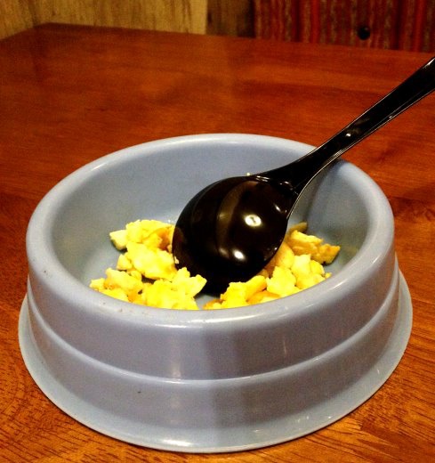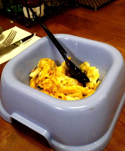 我當然立馬說不會,沒多久服務生就拿了招待給狗狗吃的炒蛋來,不過份量有點少納....(招待的所以就不介意啦)