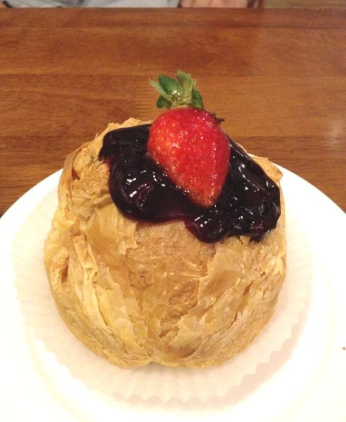 泡芙內餡非常好吃喔!!不會很甜跟油膩,但是泡芙皮上層可能因為出爐有點時間,變的比較濕軟,